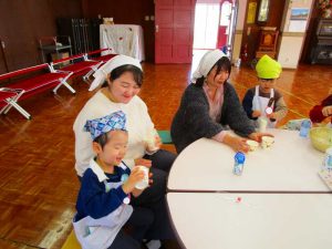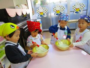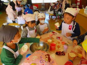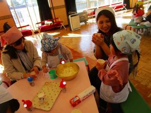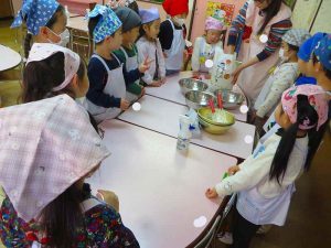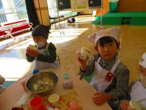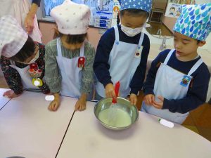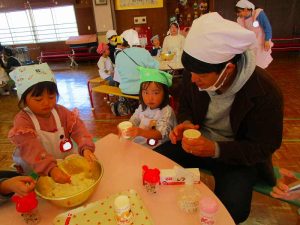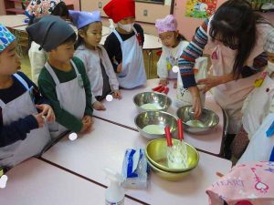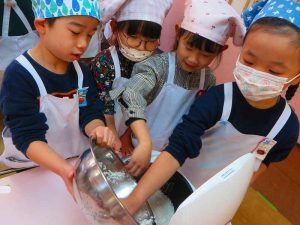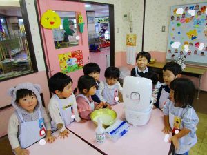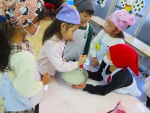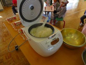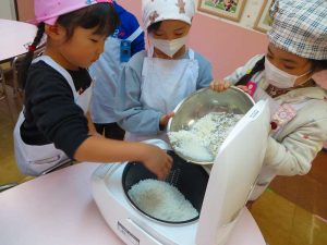 もも組さんも、今年はバケツ稲栽培で育てた自分たちのお米も混ぜて作ることになり、