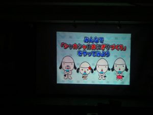 3階に集まった全園児&もも組さんの保護者の皆さん♪