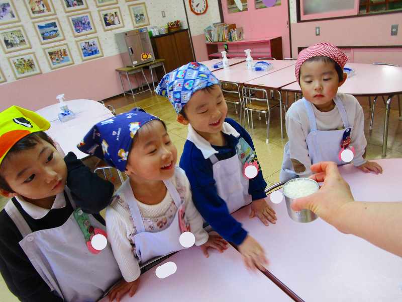 もも組さんのお米も、少し色が違うので「見えるよ!」と子ども達も気づけたようでした💛