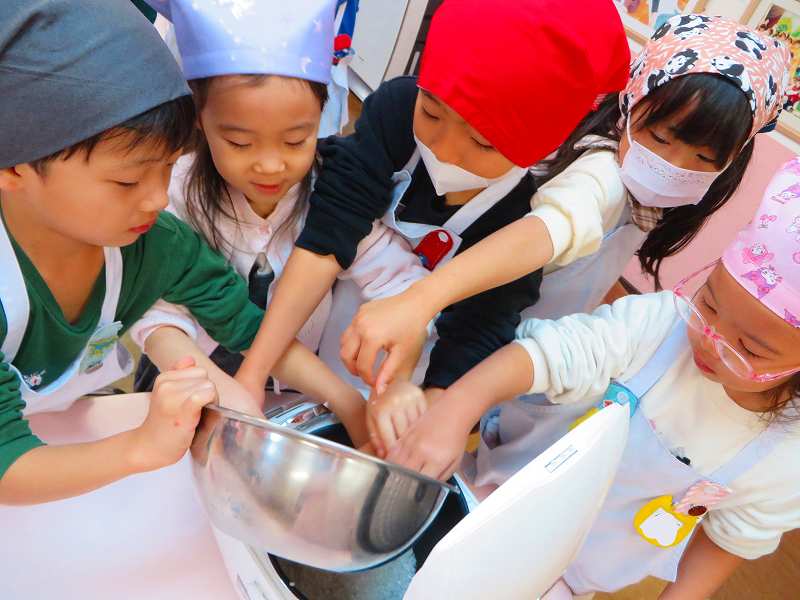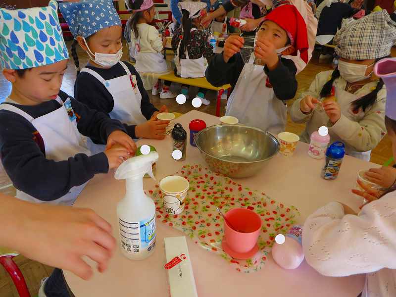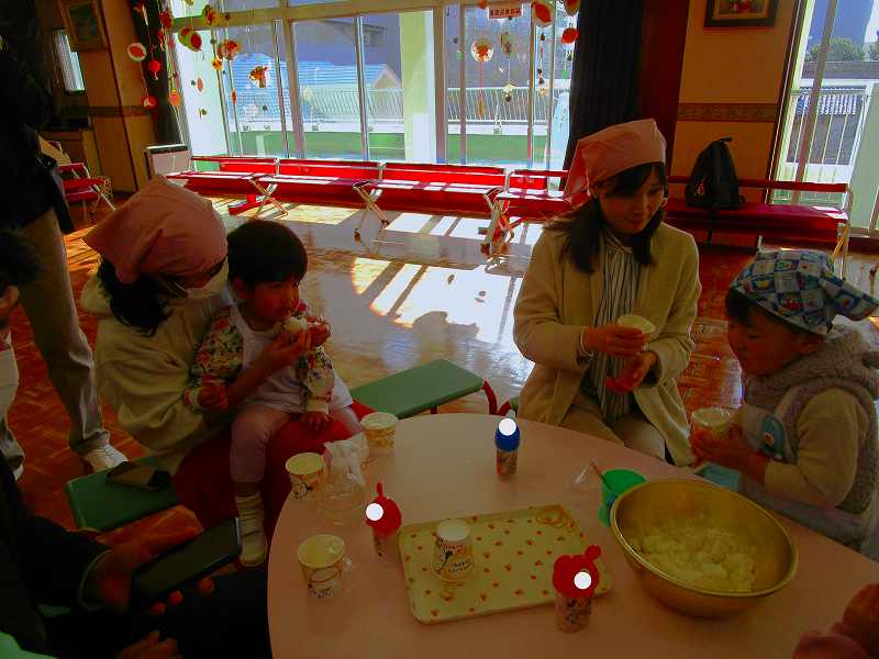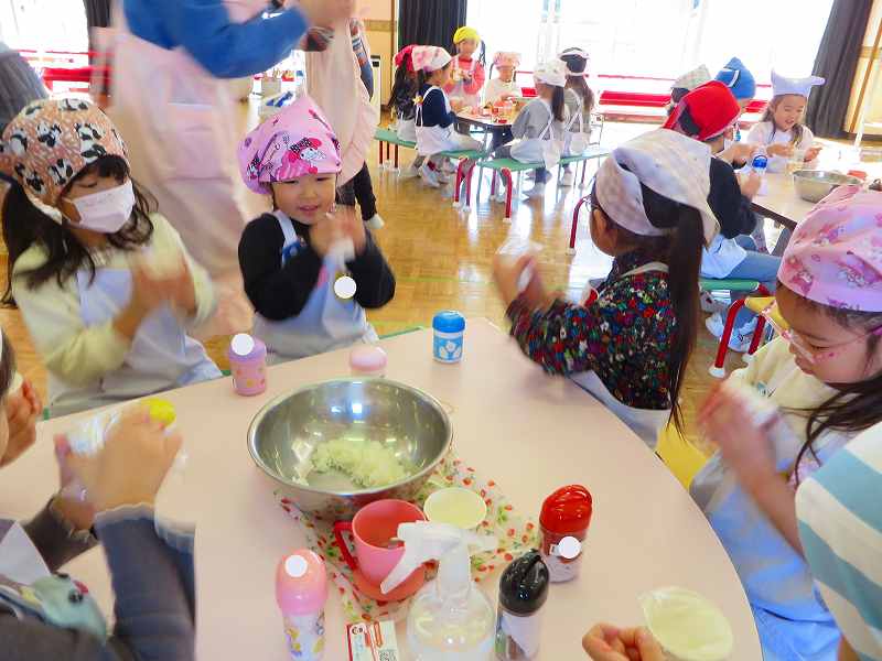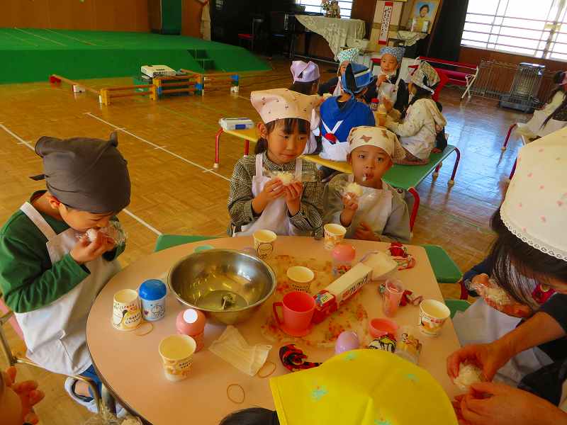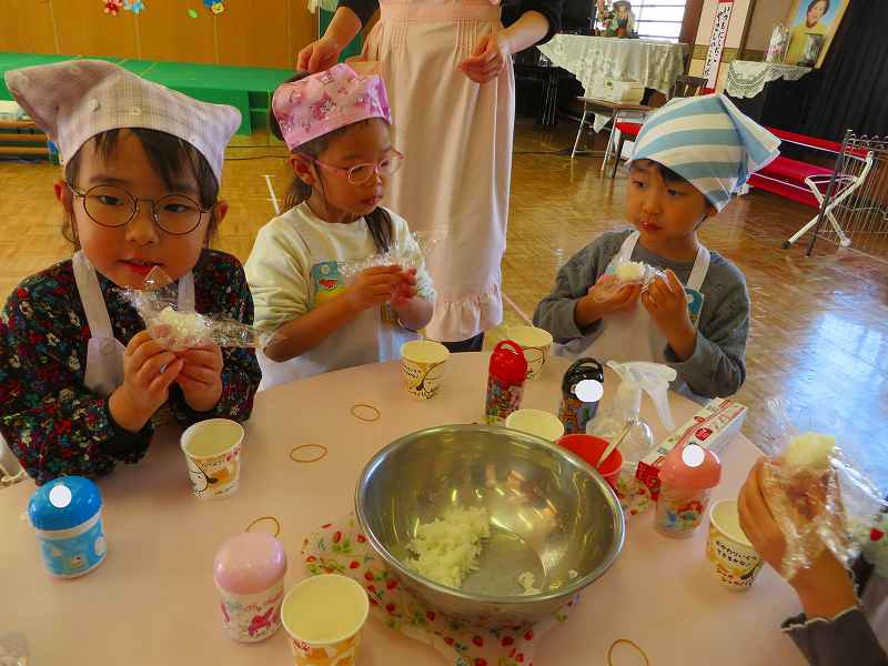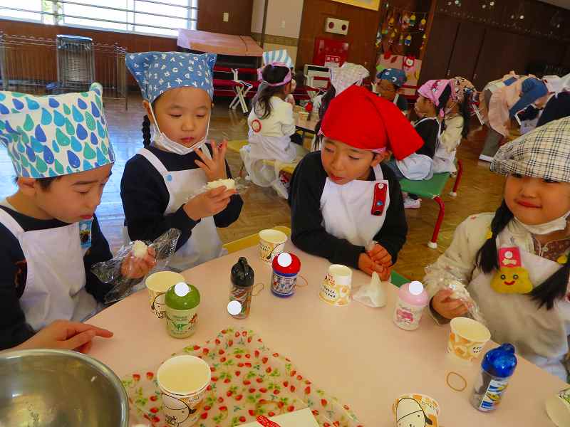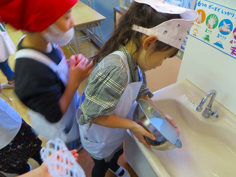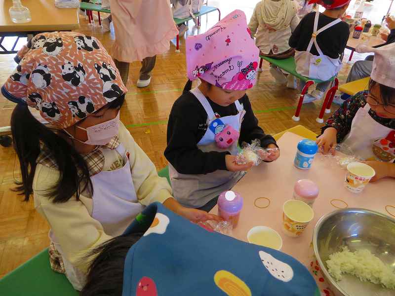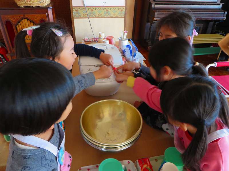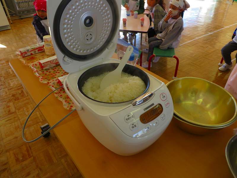 もも組さんも、今年はバケツ稲栽培で育てた自分たちのお米も混ぜて作ることになり、