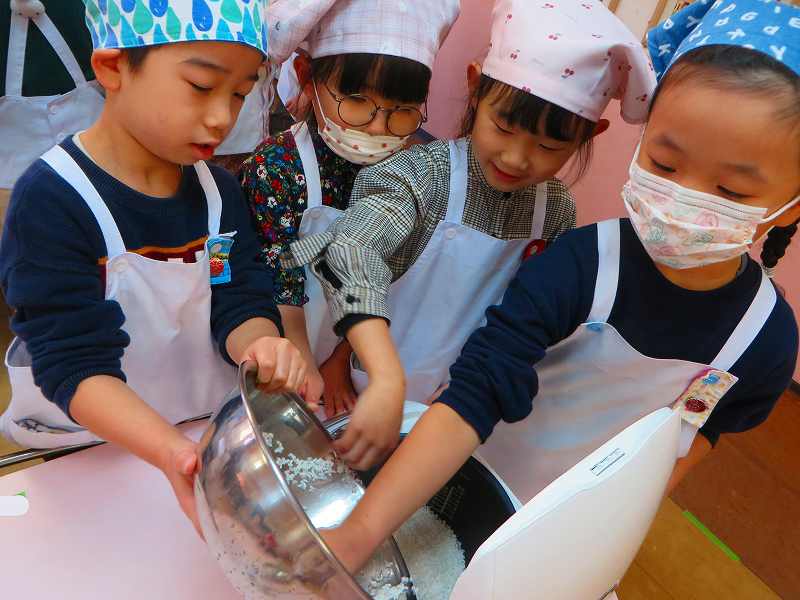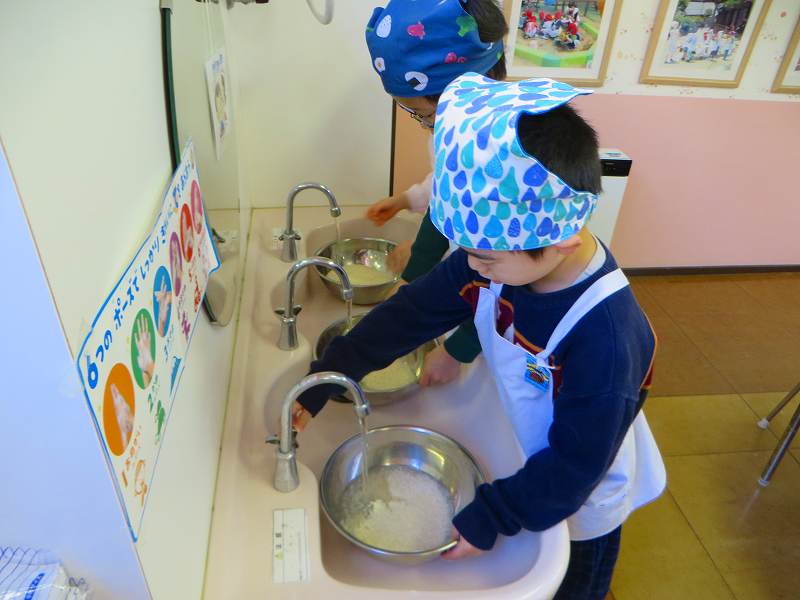もも組さんが育てたお米もしっかり入れてとぎましたよ✨