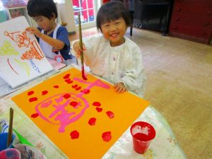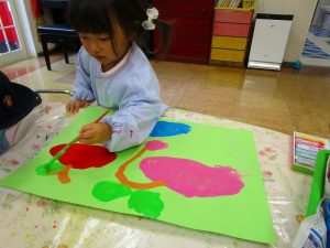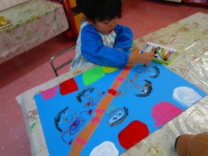 白い大きな紙が、あっという間に楽しい絵でいっぱいになりました♪