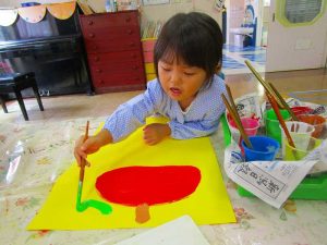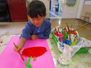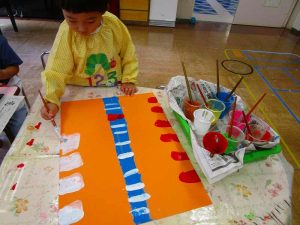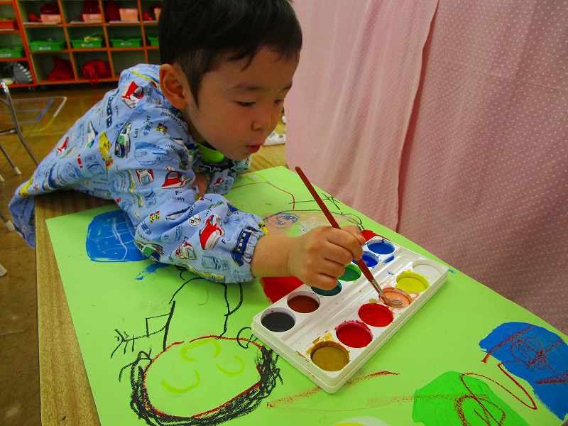 まずは、お絵描きのお約束や絵の具の使い方をよ~く聞きました。