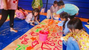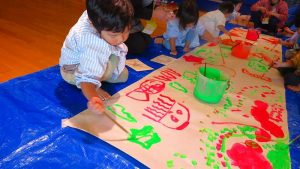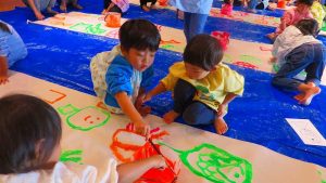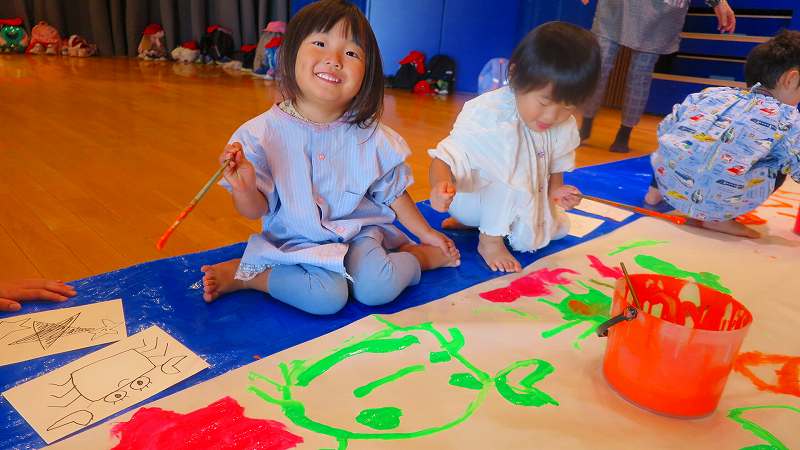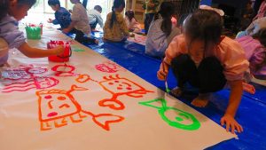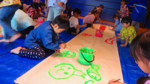 白い大きな紙が、あっという間に楽しい絵でいっぱいになりました♪
