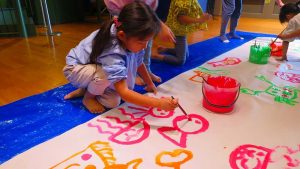 今回は「光と音のホール」という広いお部屋で、巨大壁画を描く体験をしてきましたよ🎨
