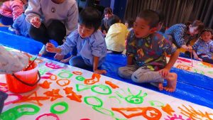 まずは、お絵描きのお約束や絵の具の使い方をよ~く聞きました。