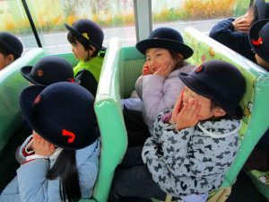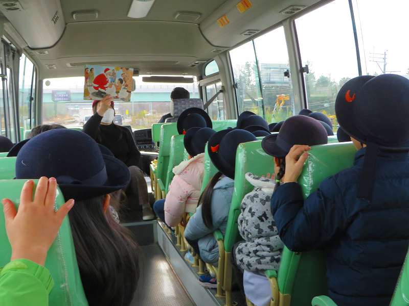 ちょっぴり長い時間なので、黄色バスの中では紙芝居や楽しいゲームをして遊びました♪