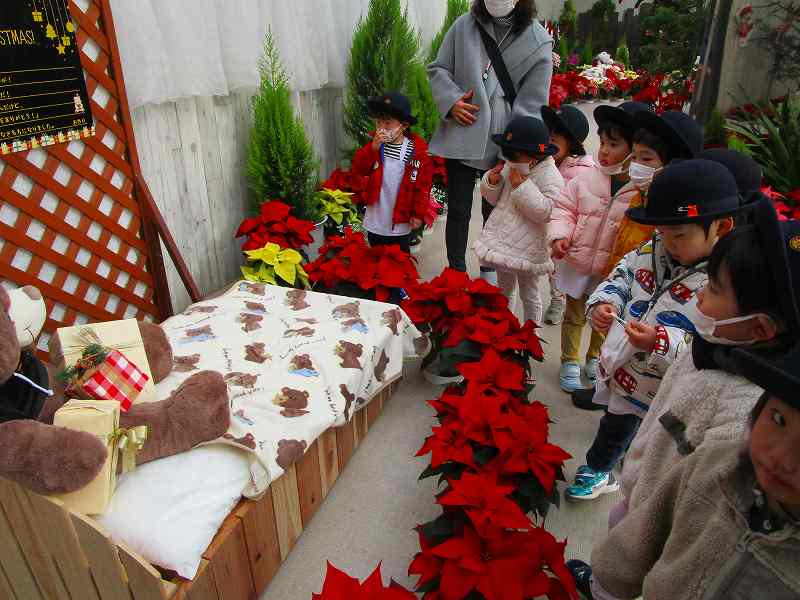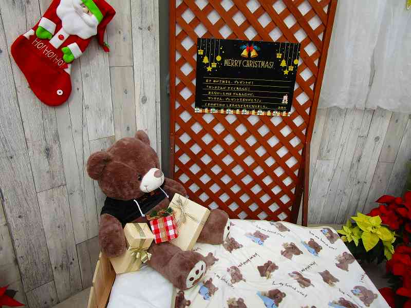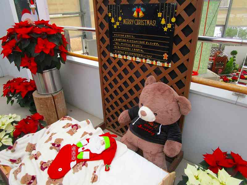 かわいい くまのぼうやを主人公にしたストーリー仕立ての展示や、ポインセチアなどの植物、ツリーなど、鮮やかな飾りにみんな大喜びでした💖