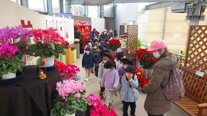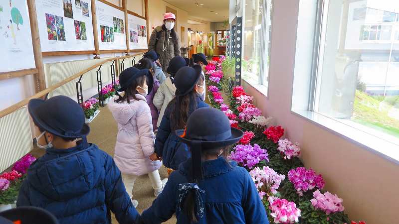 次のエリアに続く廊下には、きれいなシクラメンがたくさん咲いていました!