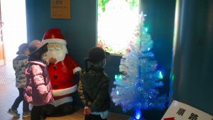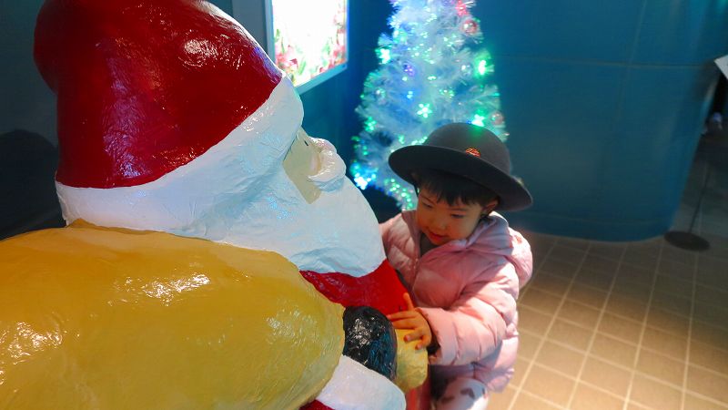 出口の近くには光るツリーや、サンタさんもありました🎅
