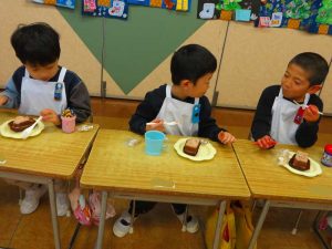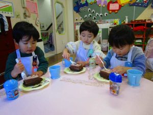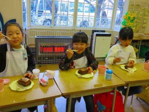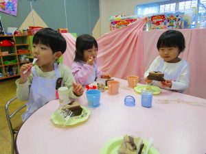 そして、お部屋に戻ってからクリスマスケーキと温かい麦茶をみんなでいただきましたよ🍰