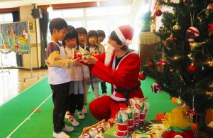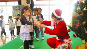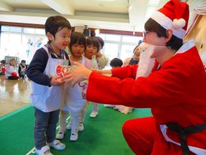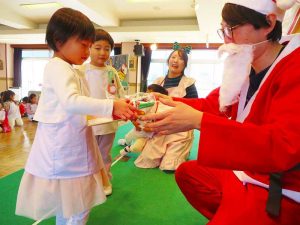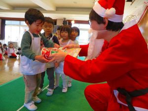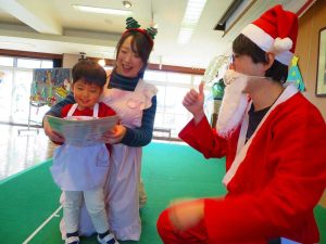 「ちょっと早いけど、みんなにプレゼントを持ってきたよ♪」とあわてんぼうのサンタクロースさんからみんなにプレゼントが・・・!