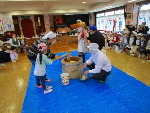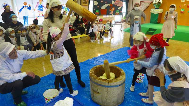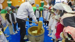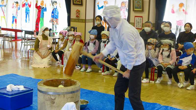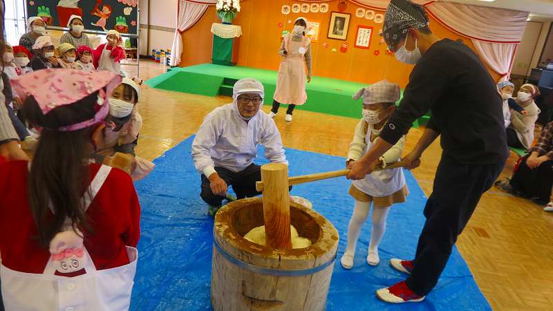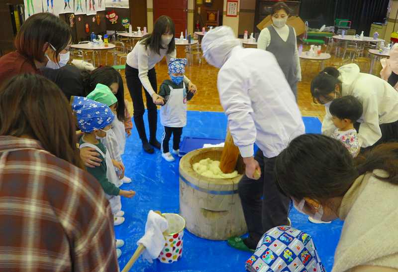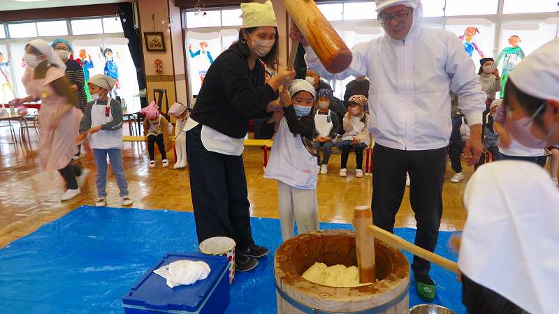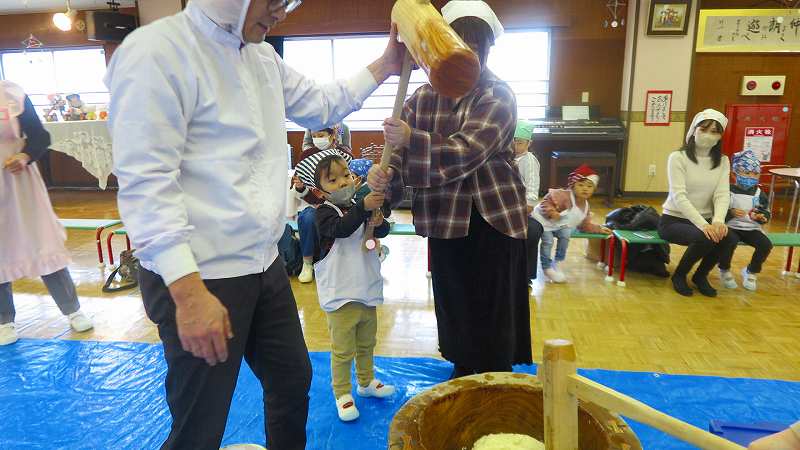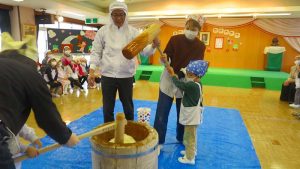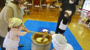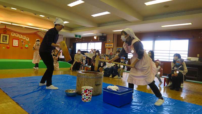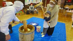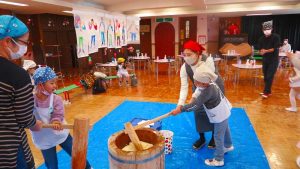 おうちの方も一緒なので、大人用の大きな杵に挑戦したお友達もいました!