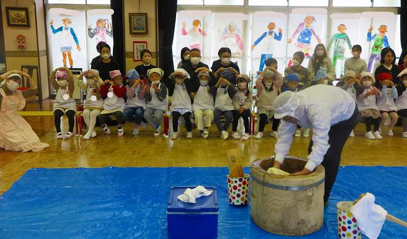 そして園長先生のお話聞いた後に♪ペッタンおもち のお歌も歌いました😄