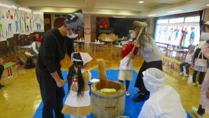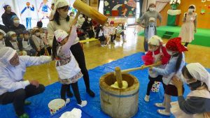 今日は、3学期始業式&新年おたのしみおもちつき大会でした!