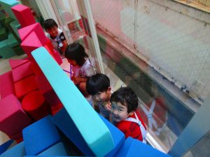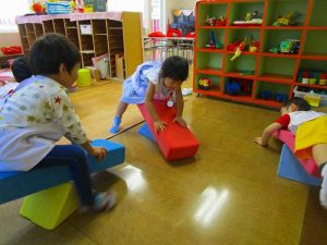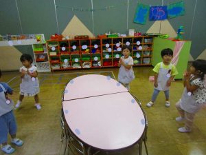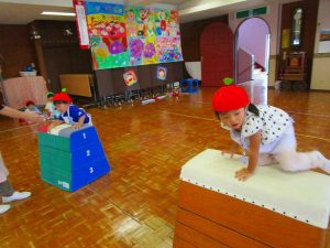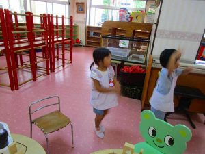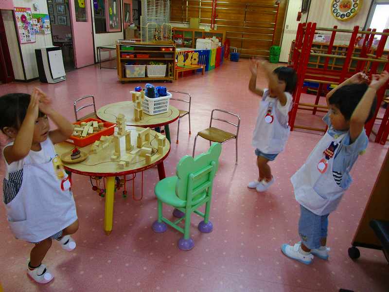 お遊戯室では、積み木遊びや 星組のお兄さんお姉さんのダンスを真似っこして嬉しそう✨