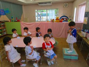 お友達のマネをして、おまいりも少しずつ慣れてきています♪