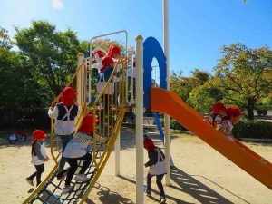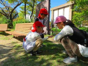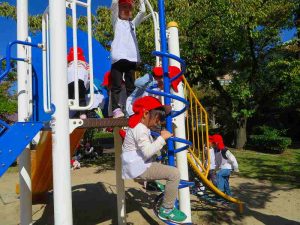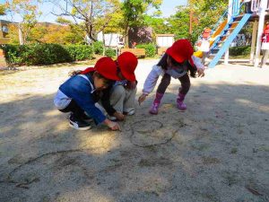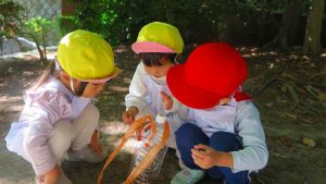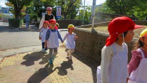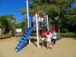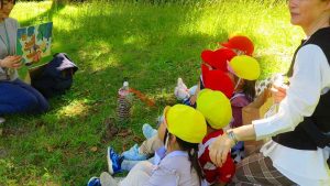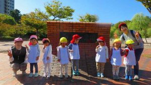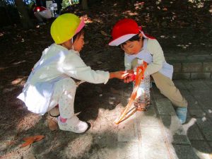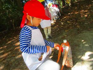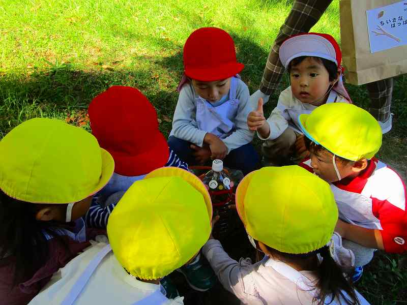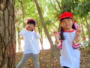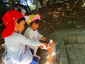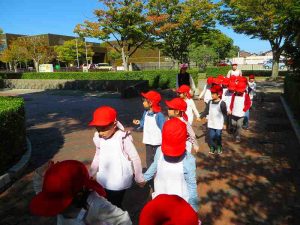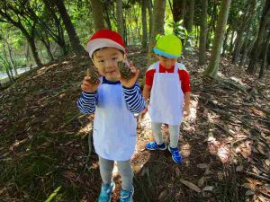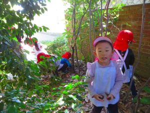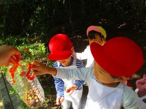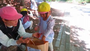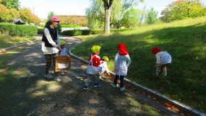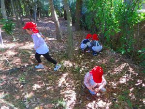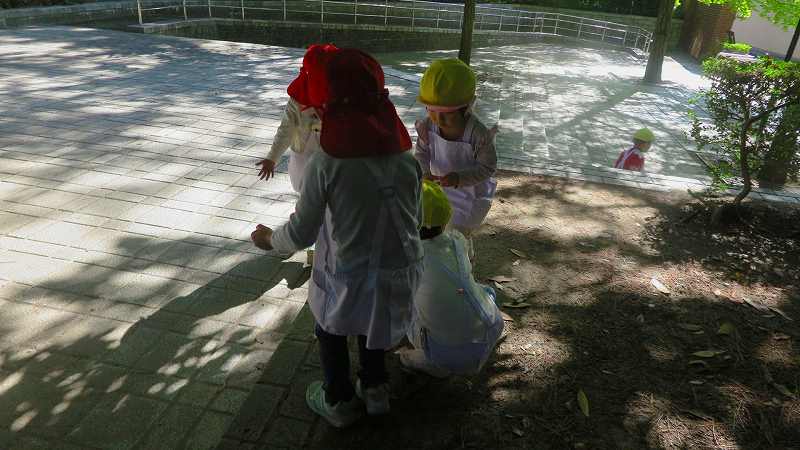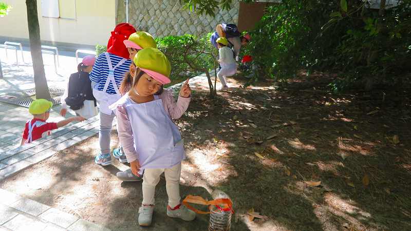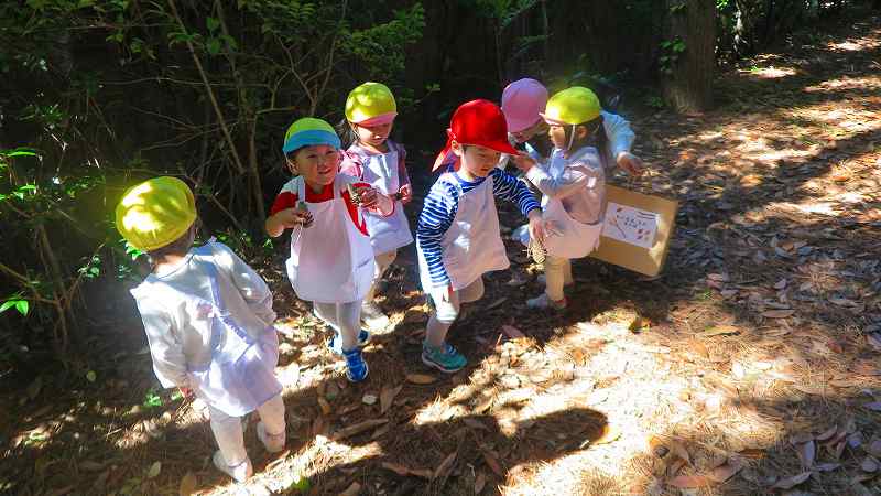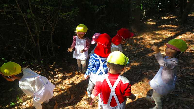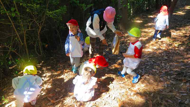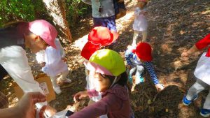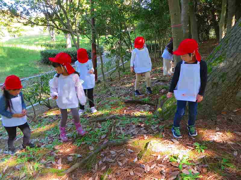 10月15日(水)、今日はもも組と星組で、それぞれ西大畑公園へどんぐり拾いに行ってきました!