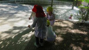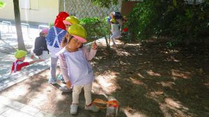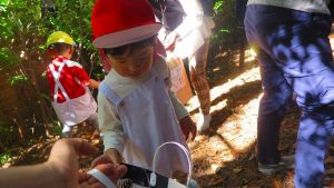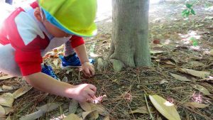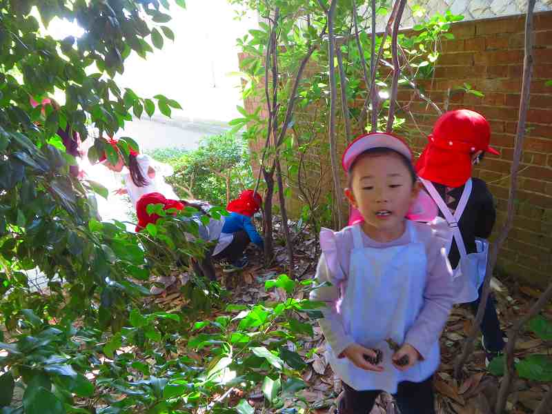松ぼっくりや葉っぱ、小枝もいっぱい見つけて嬉しそうなもも組さん🍑