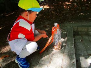 見つけたどんぐりはペットボトルで出来た、どんぐりが大好物の”りすちゃん”に食べさせてあげました💖