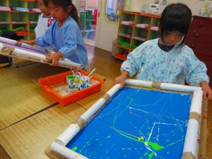 絵の具の付いたビー玉をコロコロ転がしたり・・・