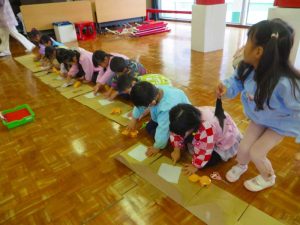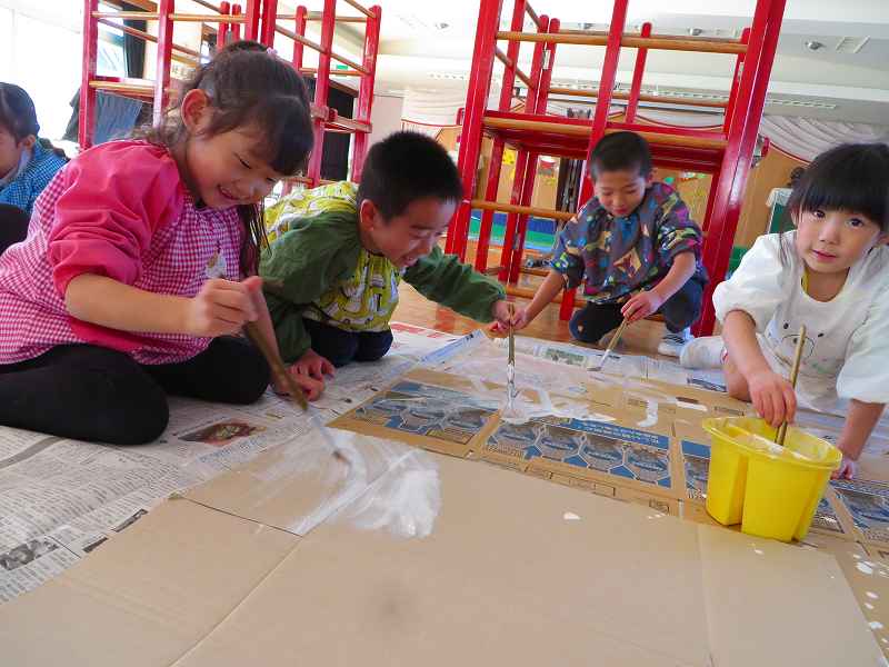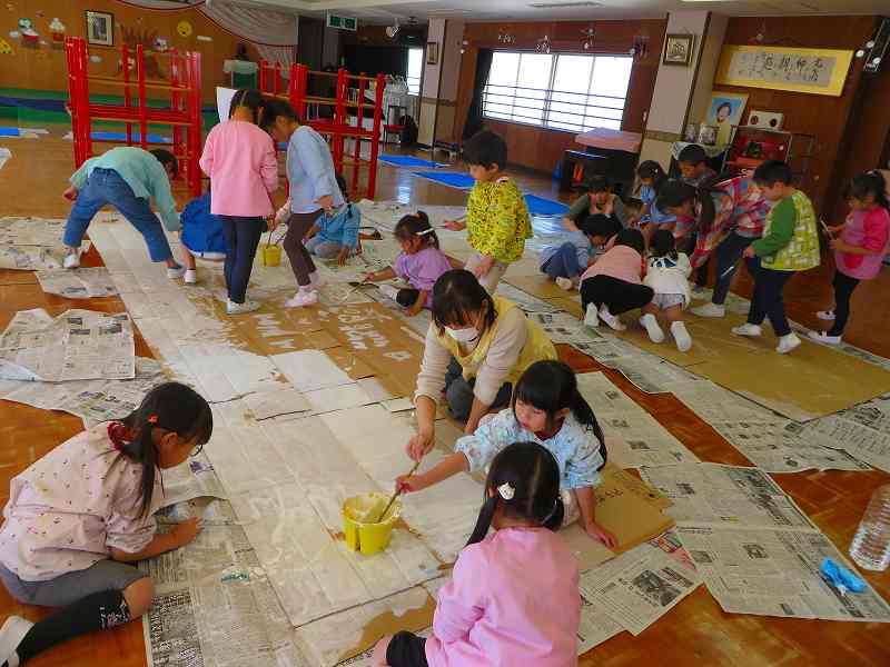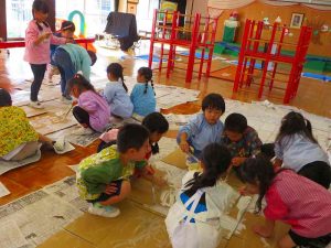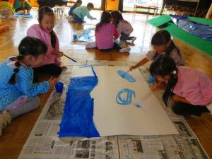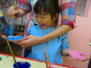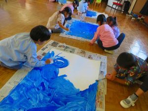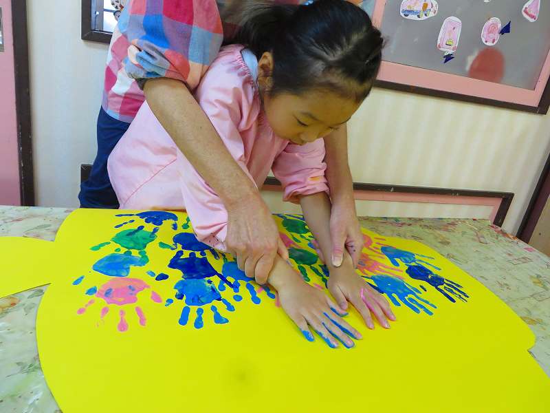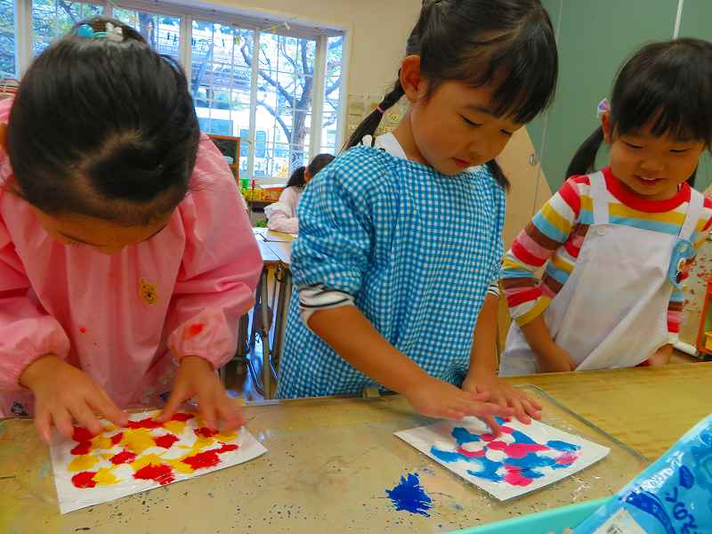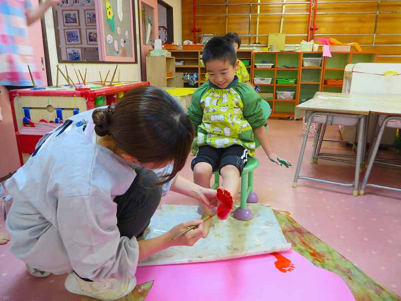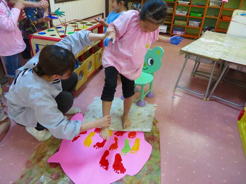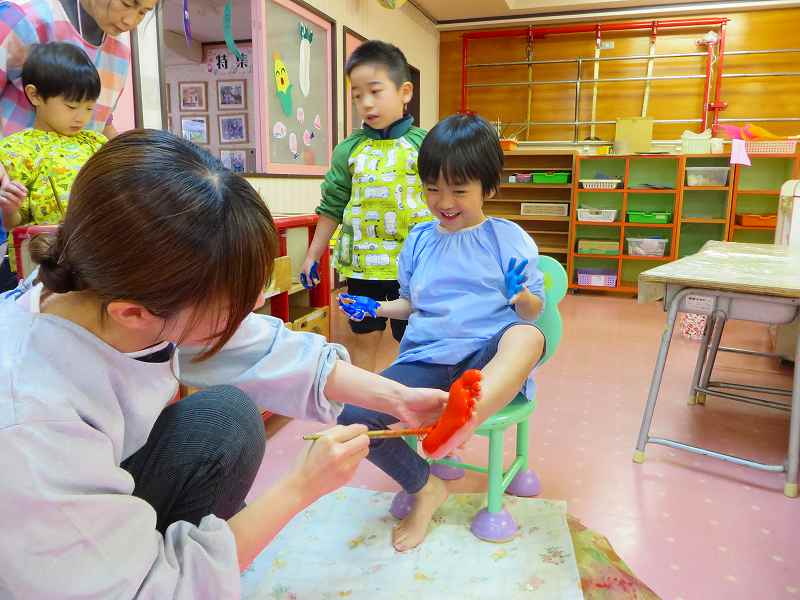 絵の具を手や足にぬりぬり、ペッタン!したり・・・