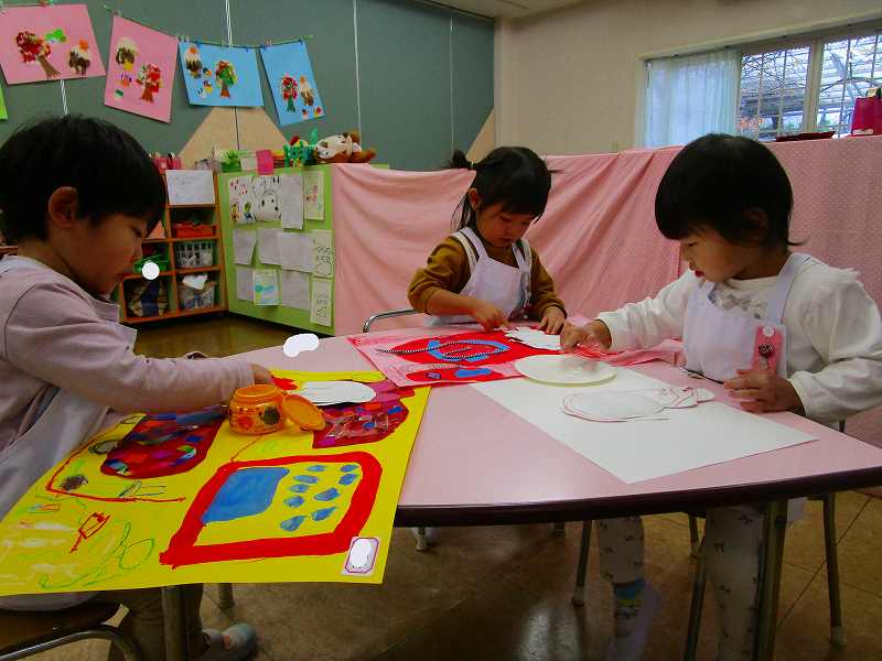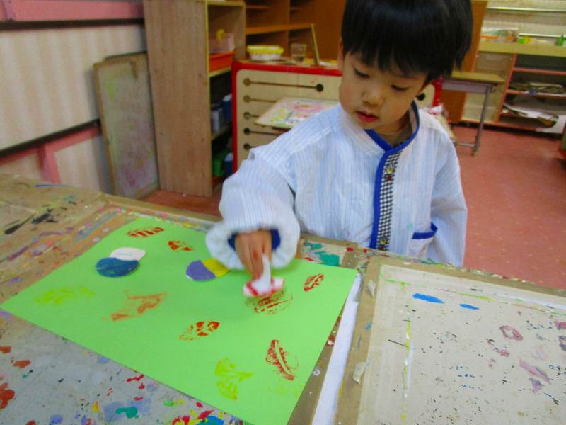 葉っぱ型のスチレン版でスタンプ遊びに大喜びしたり…