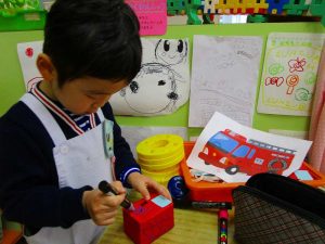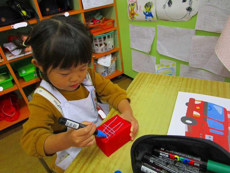 参観日におうちの方と作るミニ消防車の準備をしたり…