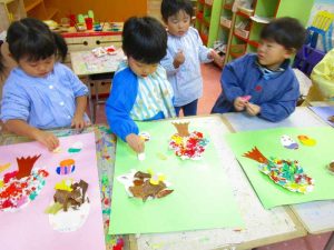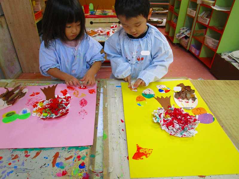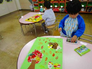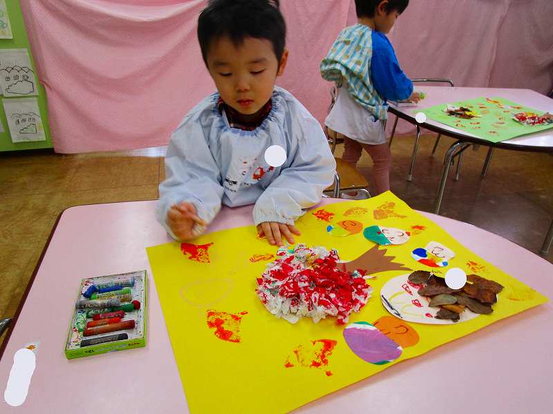秋の物に囲まれた自分たちをお絵描きしたり…