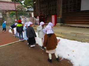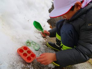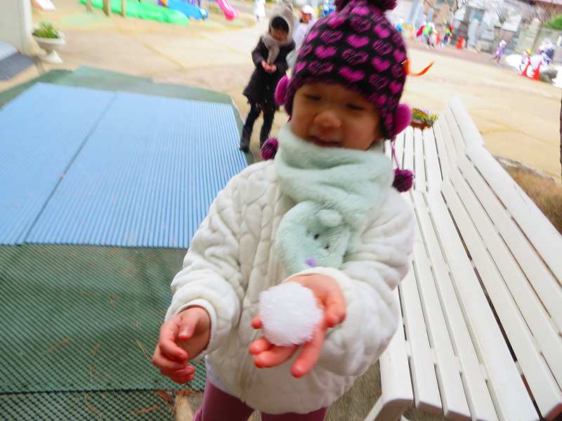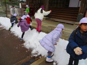 園庭には年始に降った雪で小さな山ができていました❄