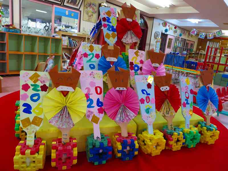 書き初めも羽子板もお遊戯室に飾ってありますので、どうぞご覧下さい💙