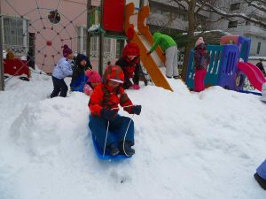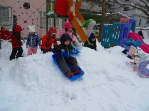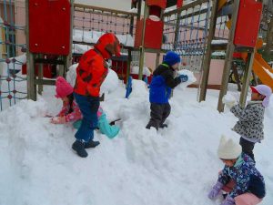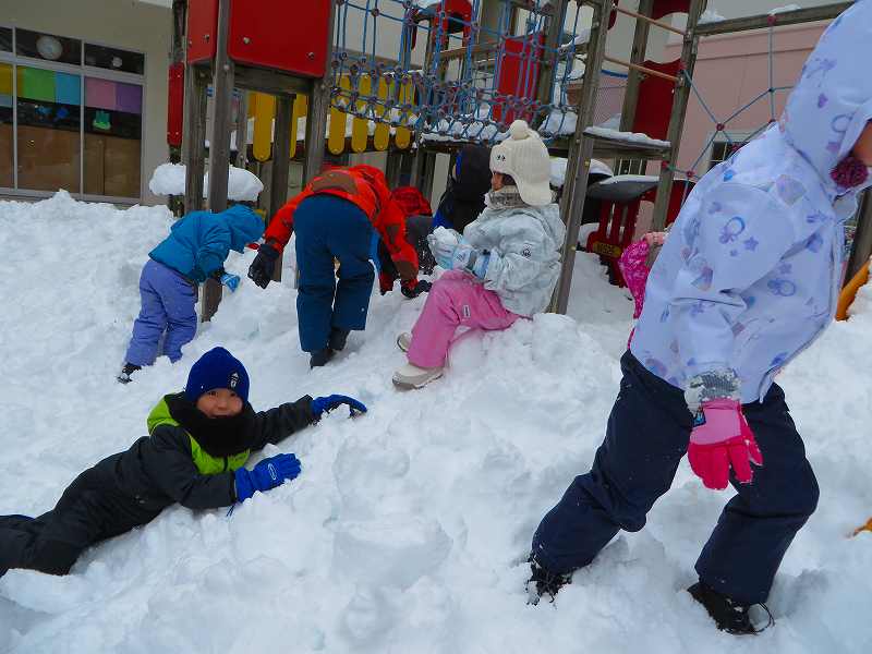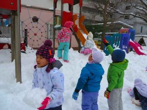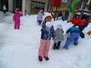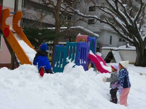 先週末の大雪で、幼稚園もまっしろ!