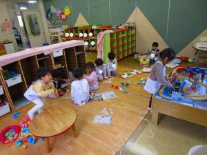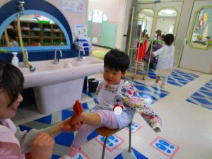 久しぶりの登園でもにこにこ笑顔で遊んでいるもも組さん🍑