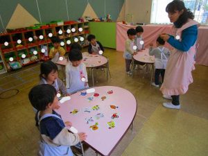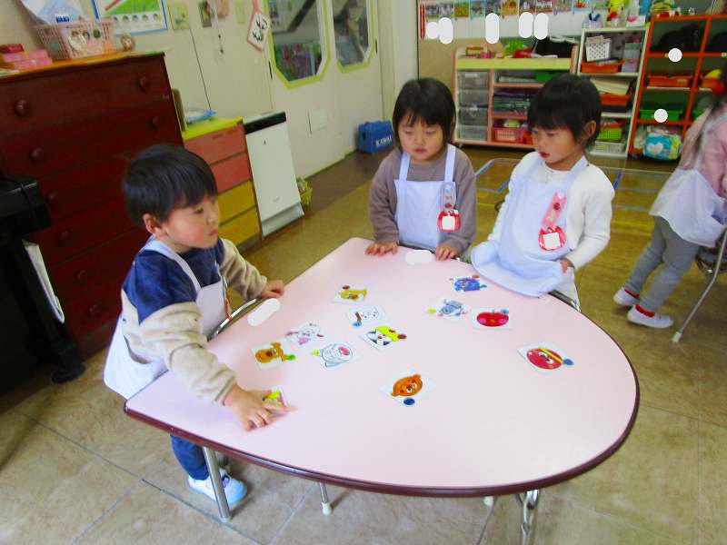 初めての3歳のもも組さんも徐々に「あった!」とカードに手を伸ばし、取れるとにこにこカードを眺めていました😊