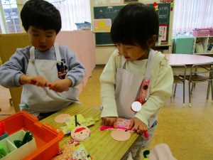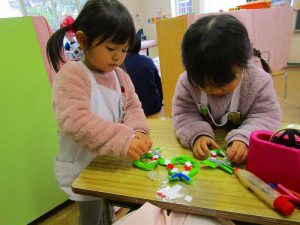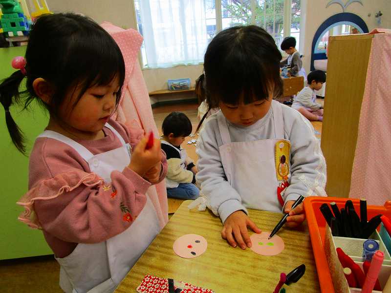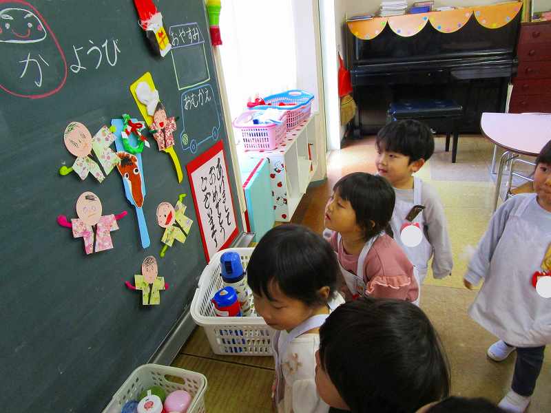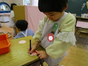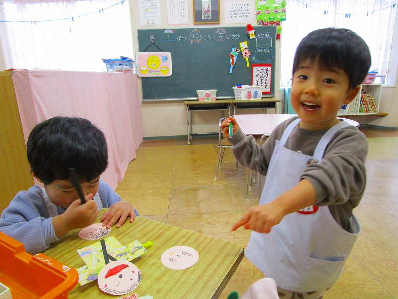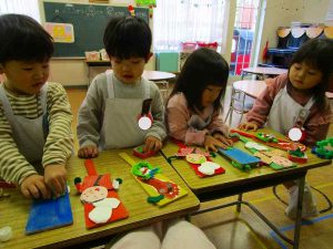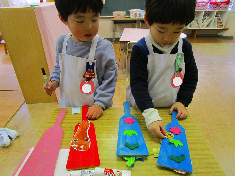 完成した羽子板は、幼稚園の玄関に飾りましたので、来園されたときには是非ご覧下さい!