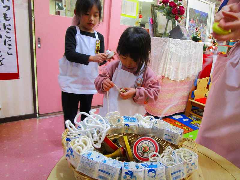 福笑いやコマ回しなど昔ながらの遊びにも興味津々👀