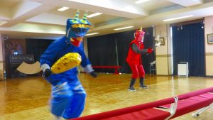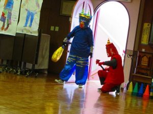 そして、「♪まめまき」や「♪ほーい豆まき」のお歌を歌ったり、「♪おにのパンツ」を踊ったり、