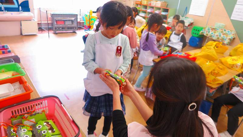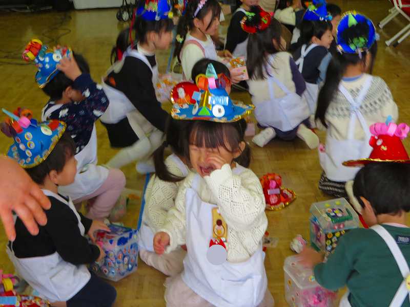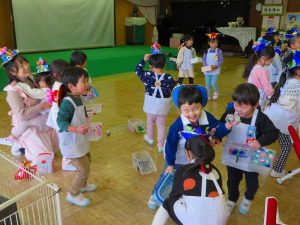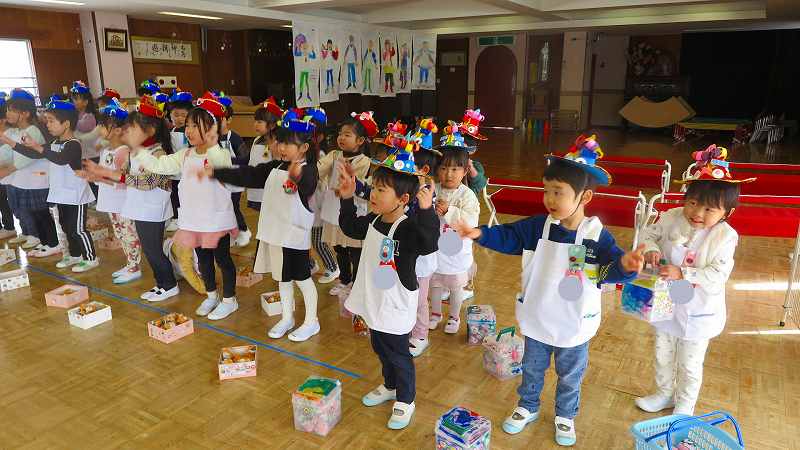 最後に節分のお土産をもらって嬉しそうな子どもたちでした😊