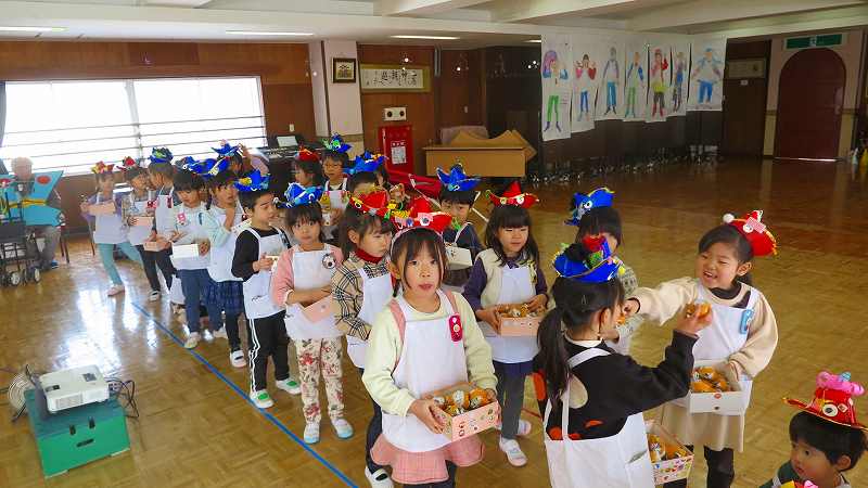 幼稚園では節分会が行われました。