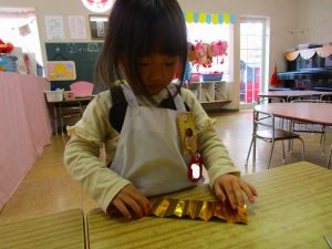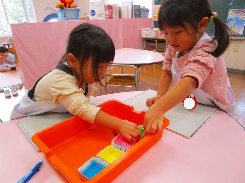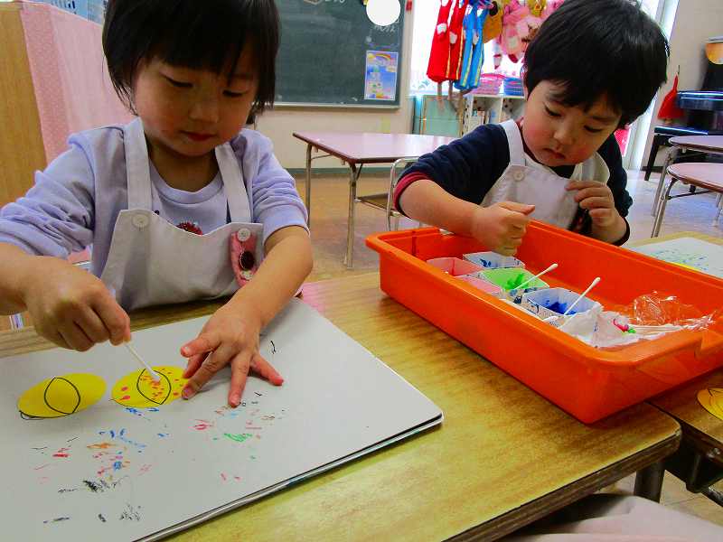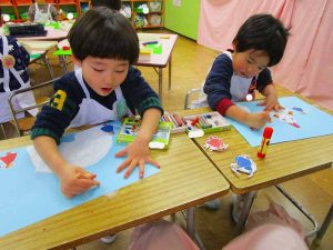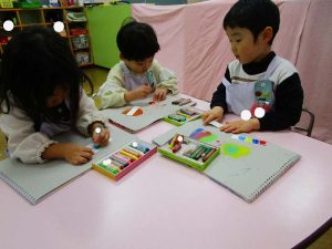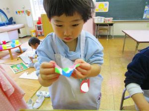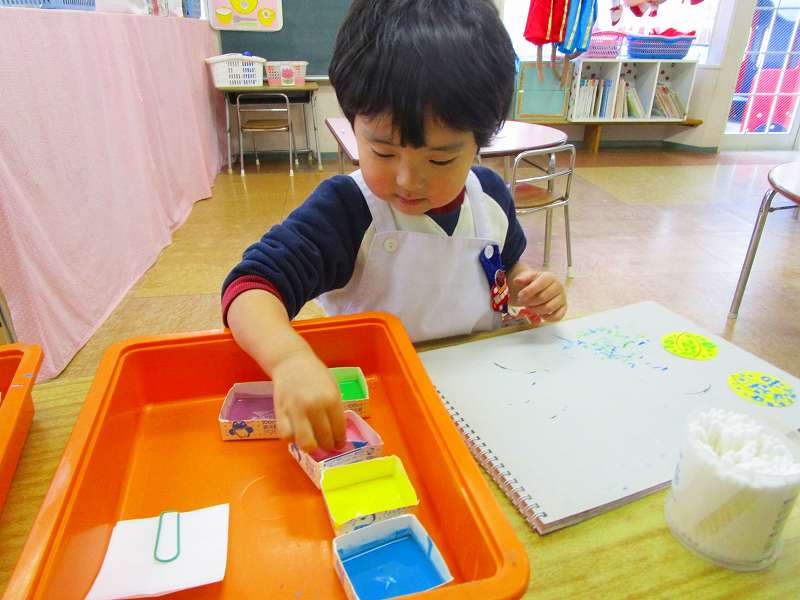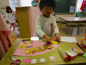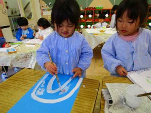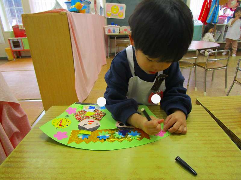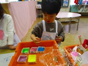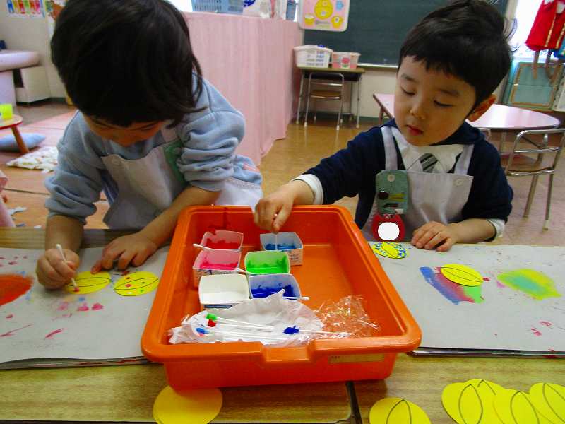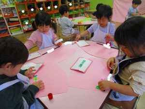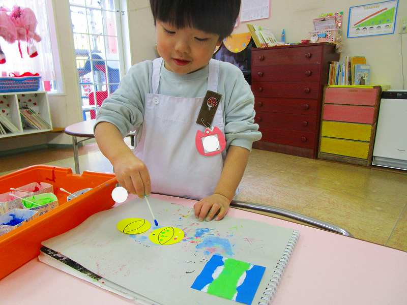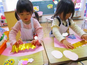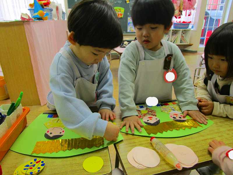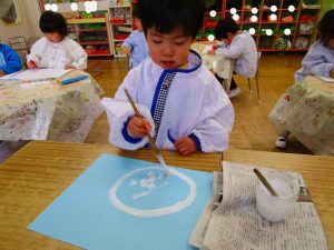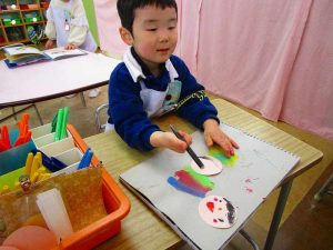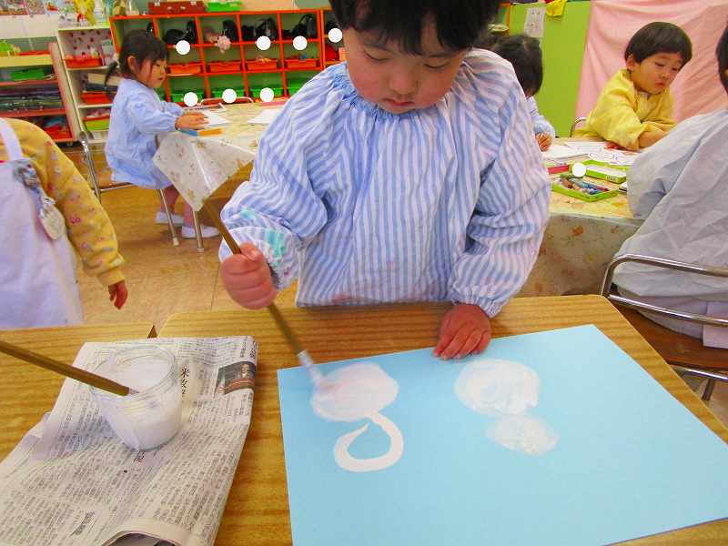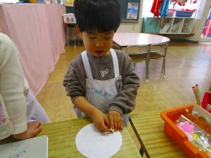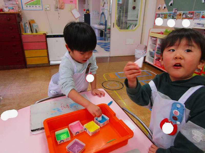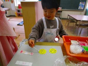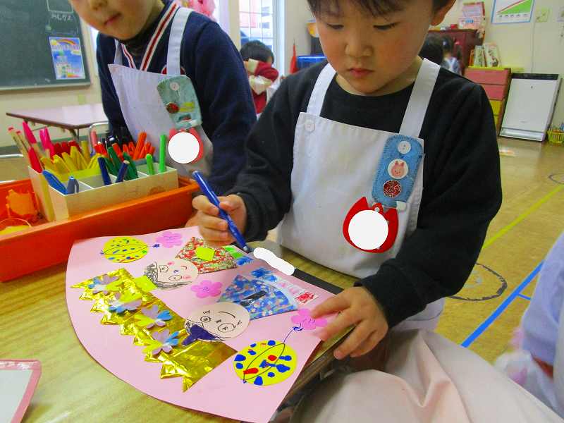 「明かりをつけましょ ぼんぼりに~♪」と歌いながら、絵の具でぼんぼりや屏風の飾りを作ったりしました!