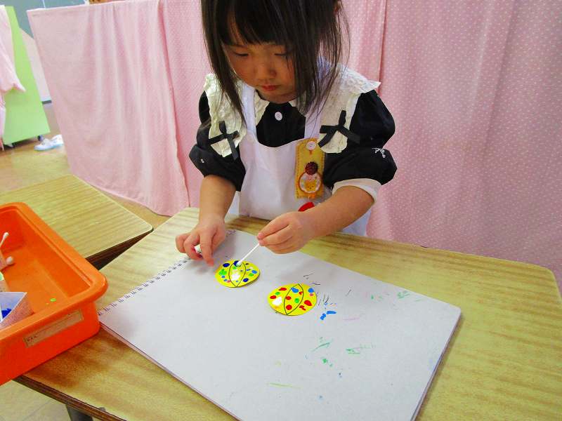 綿棒に絵の具を付けてチョンチョンチョン…カラフルなぼんぼりに✨