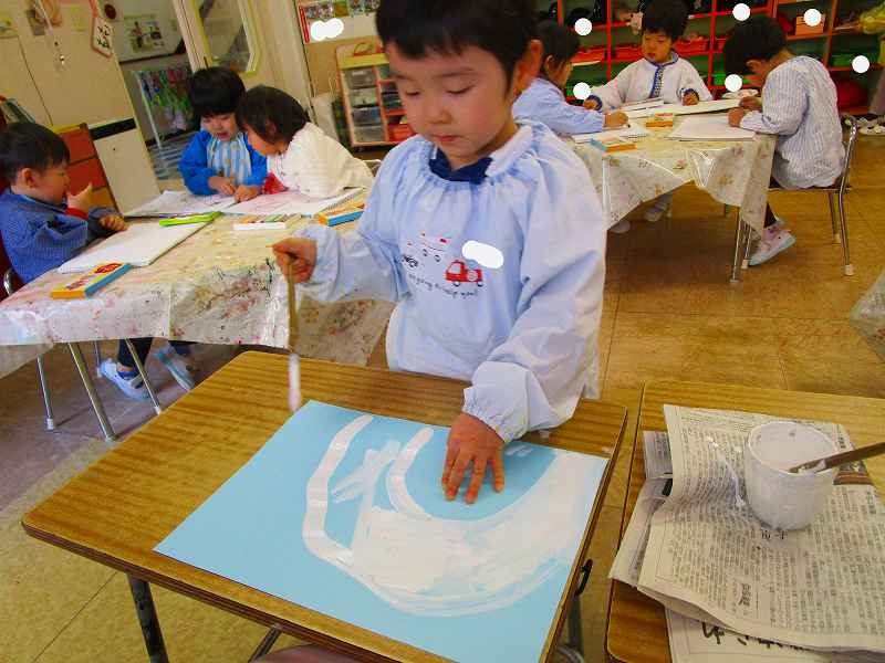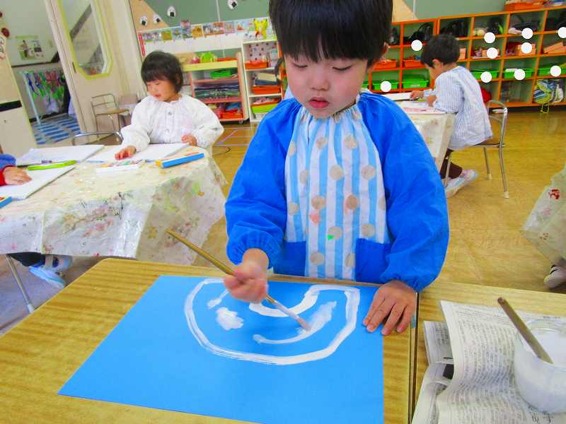 2月にも雪が積もり、沢山雪遊びを楽しんだので、雪遊びのお絵描きも楽しみました😊