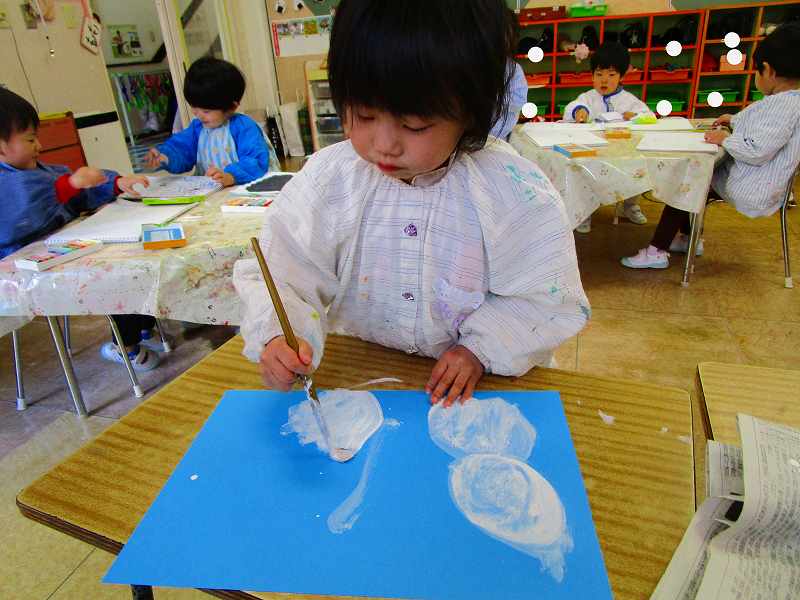 絵の具で雪を描いて…